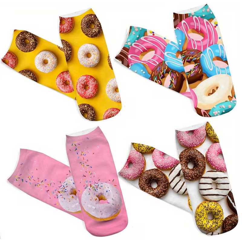 Κάλτσες με Σχέδιο Ντόνατ σε Διάφορα Χρώματα 4 Ζευγάρια